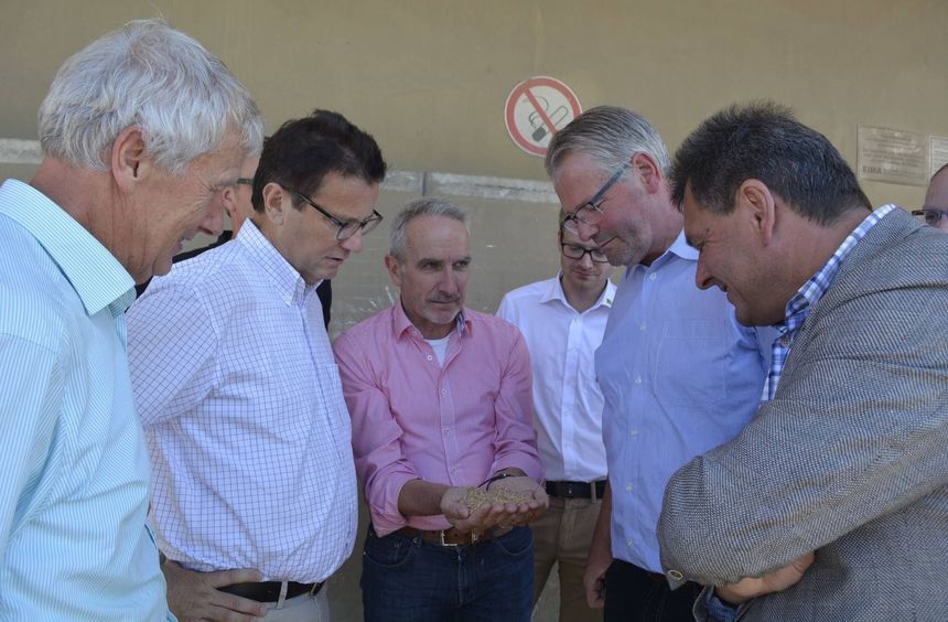 Minister Peter Hauck(zweiter v.l.) und MdB Alois Gerig waren zu Besuch bei der ZG Getreideannahmestelle in Bestenheid.Minister Peter Hauck(zweiter v.l.) und MdB Alois Gerig waren zu Besuch bei der ZG Getreideannahmestelle in Bestenheid.